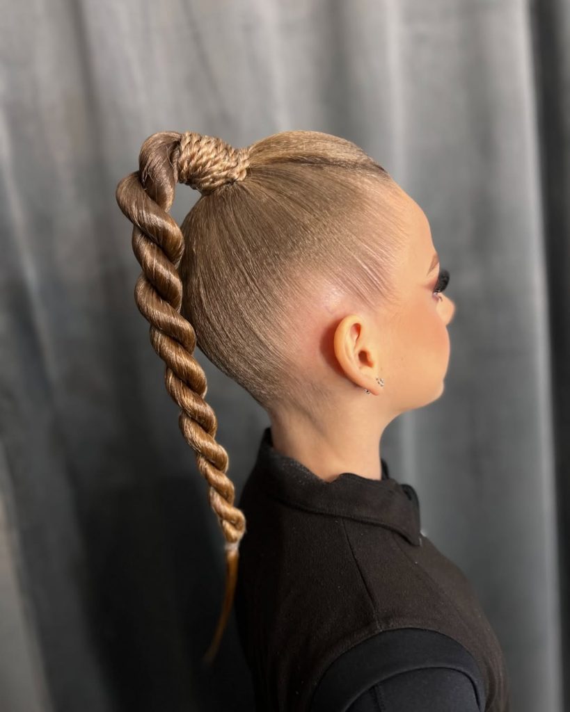This style works beautifully for women with long hair who love structure and shine. It’s especially flattering for thick or straight textures and can even be adapted for black natural hair with a smoothing serum for that glassy finish. It’s surprisingly easy to recreate this hairstyle: slick the top back, secure it high, and then twist the ponytail tightly. If you’re looking for ideas that feel youthful yet polished for church or family photos, this hairstyle serves as strong inspiration.
