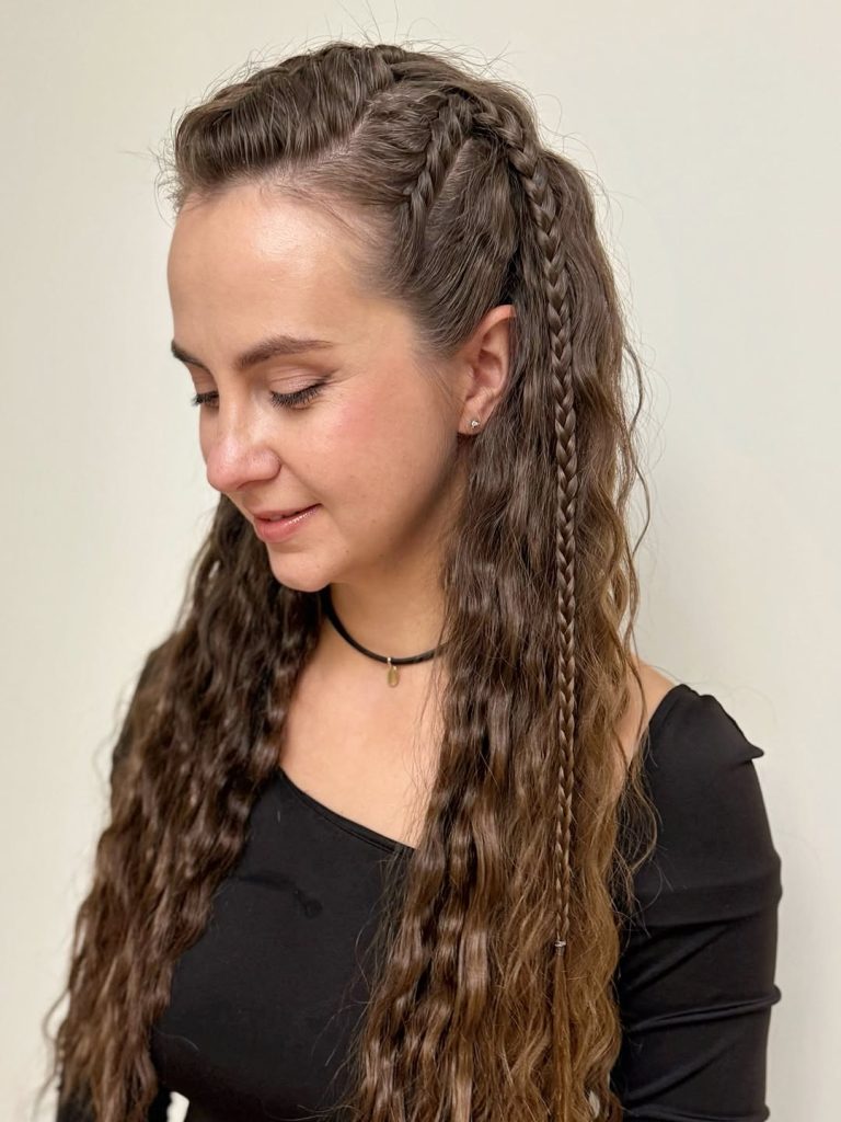 This look is especially flattering for Curly hair or naturally textured hair, but it can easily be created with a crimper or small braids left overnight. It works beautifully on Long hairs and layered cuts, giving volume without being heavy. If you love Fun spring Ideas that feel fresh and slightly whimsical, this is beautiful Inspo.