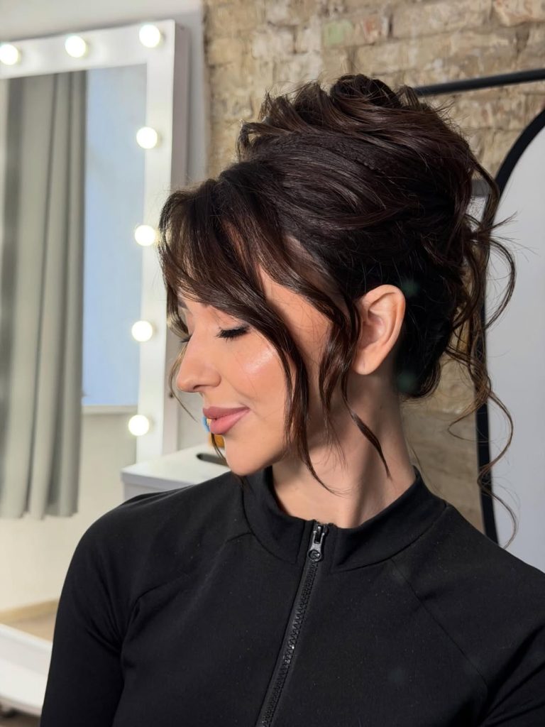 This style works best on women with long or layered hair. This look thrives on natural texture for women with medium-length hair. A curling wand and light teasing at the crown help create that airy finish. For women who love cute yet refined ideas, this romantic updo serves as dreamy inspiration.