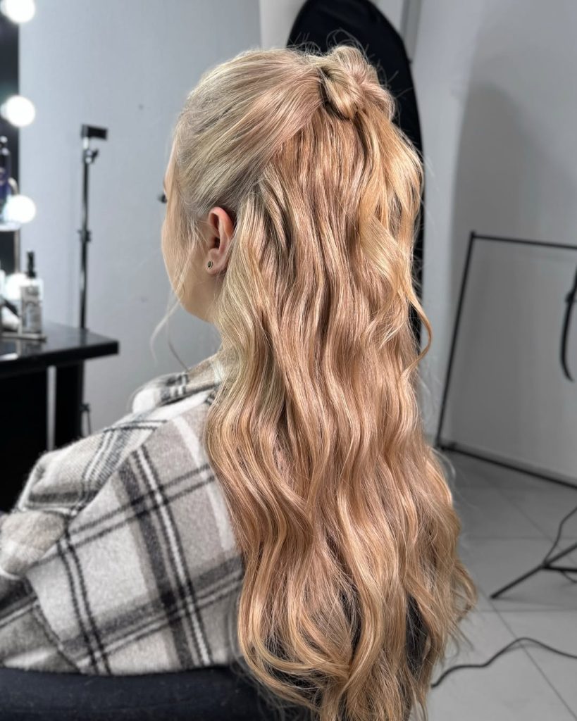 4. Voluminous Half Ponytail for Blonde Waves