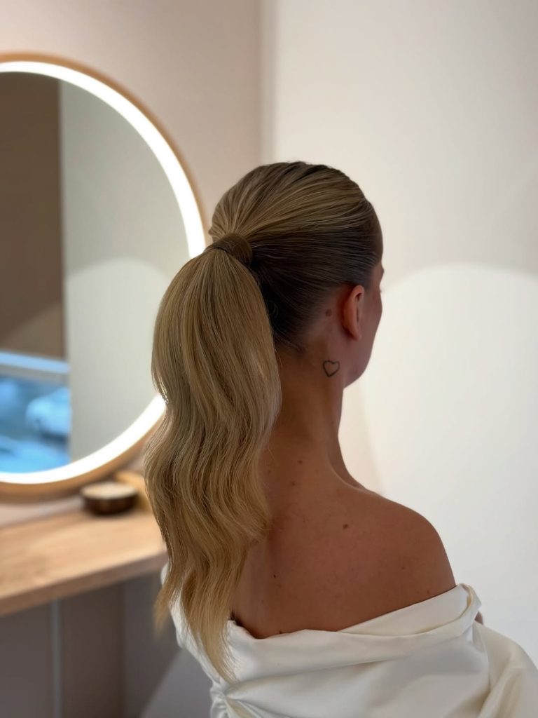 There’s something incredibly powerful about a sleek, sculpted ponytail. The glossy finish and controlled wave through the length create a look that feels intentional and sophisticated. Yes, it’s simple, yet it exudes a subtle luxury that captures attention. For Easter, it gives that “I woke up polished” energy without competing with your outfit.