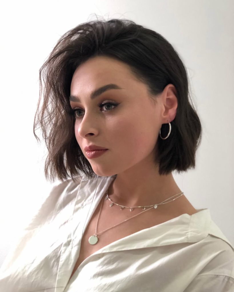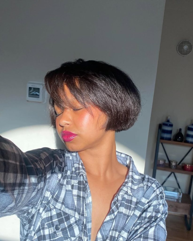 The short bob with soft bangs is the epitome of ‘cute’ and ‘minimalist.’ The look emits ‘playful’ and ‘retro’ vibes with simplicity and ease. The complete and rounded shape frames the entire face magnificently, giving it a ‘softer’ and ‘youthful’ look that is ‘feminine’ and ‘easy to take care of.