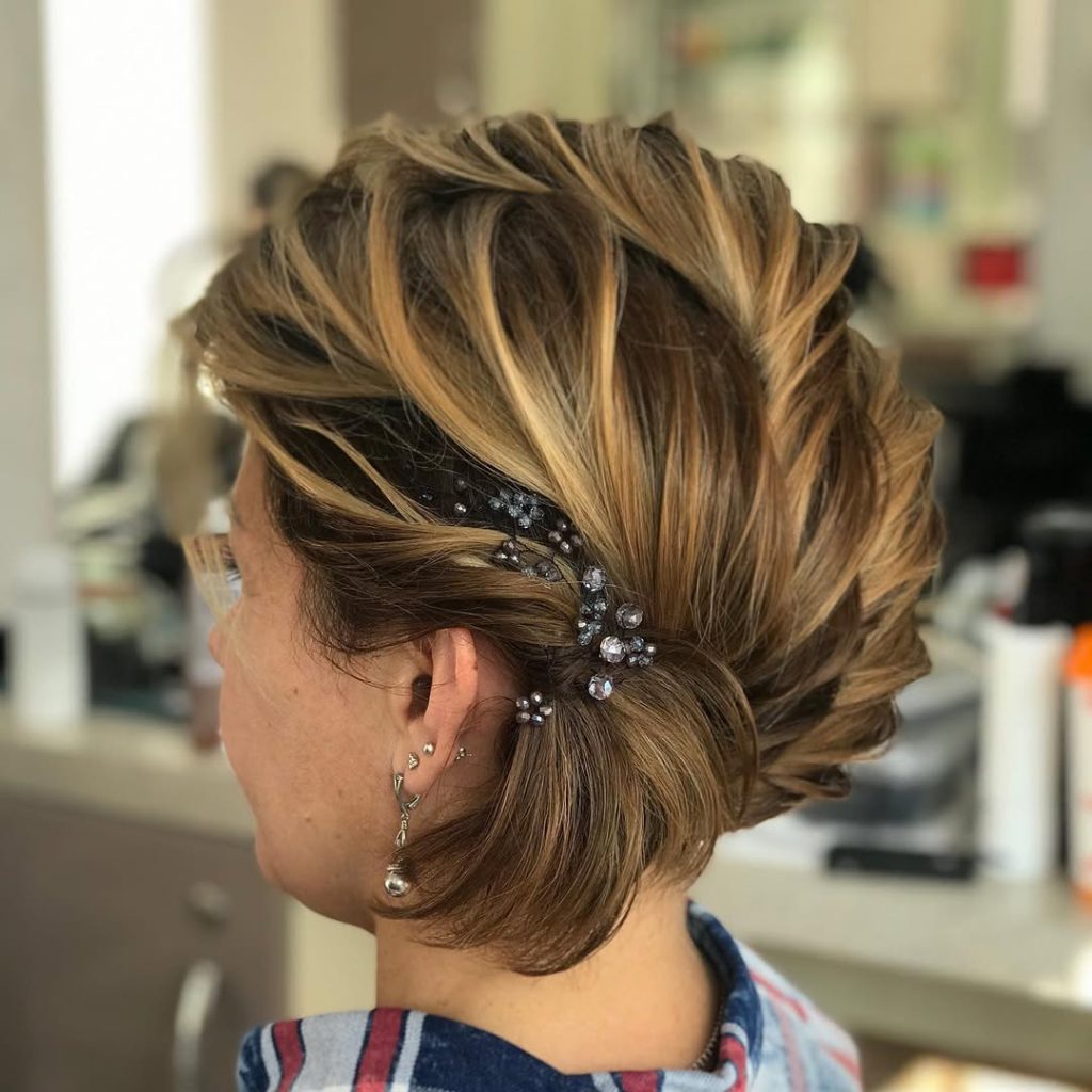 It works best on people with short to medium hair and provides extra volume and texture to thin hair. To hold it in place without making it look stiff, bobby pins and light-hold hair spray can be used. Hair accessories such as fine hair clips and pearl hairpins can be added to complete the look with added glamour.