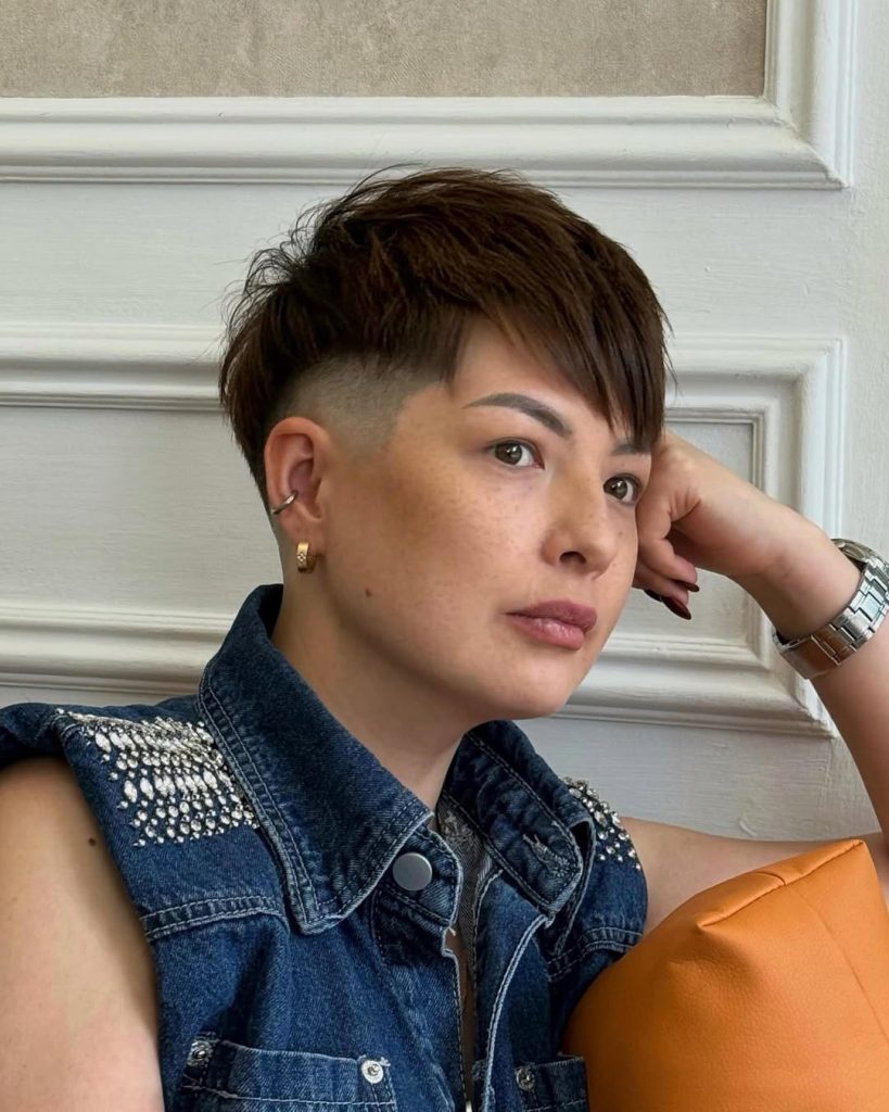 The undercut pixie haircut is perfect for women who want to make that striking statement with confidence. The haircut features shaved sides with longer layers to create the perfect blend of edgy and glamorous features that are sporty and powerful enough to reflect confidence and personal style.