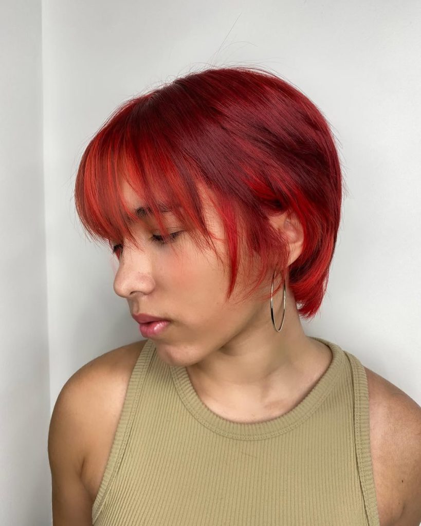 23. Red Layered Pixie with Bangs