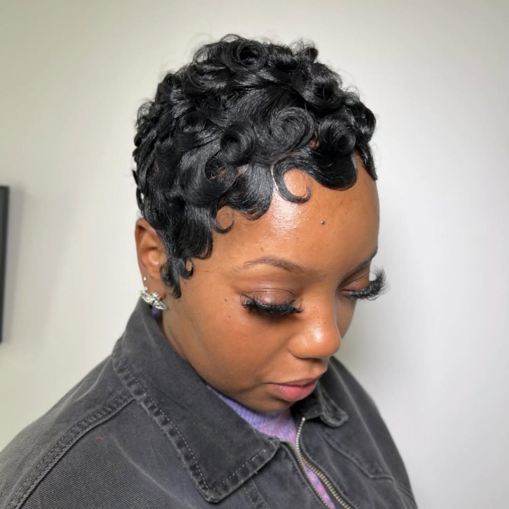 The Short Curly Pixie with Natural Texture boasts hair with soft and springy curls that accentuate the beauty of natural texture. The messy look gives this hairstyle an angelic and effortless appearance that accentuates one’s features. It is one confident and cute hairstyle that promotes warmth and individuality, perfect for women who sport attractive curls.