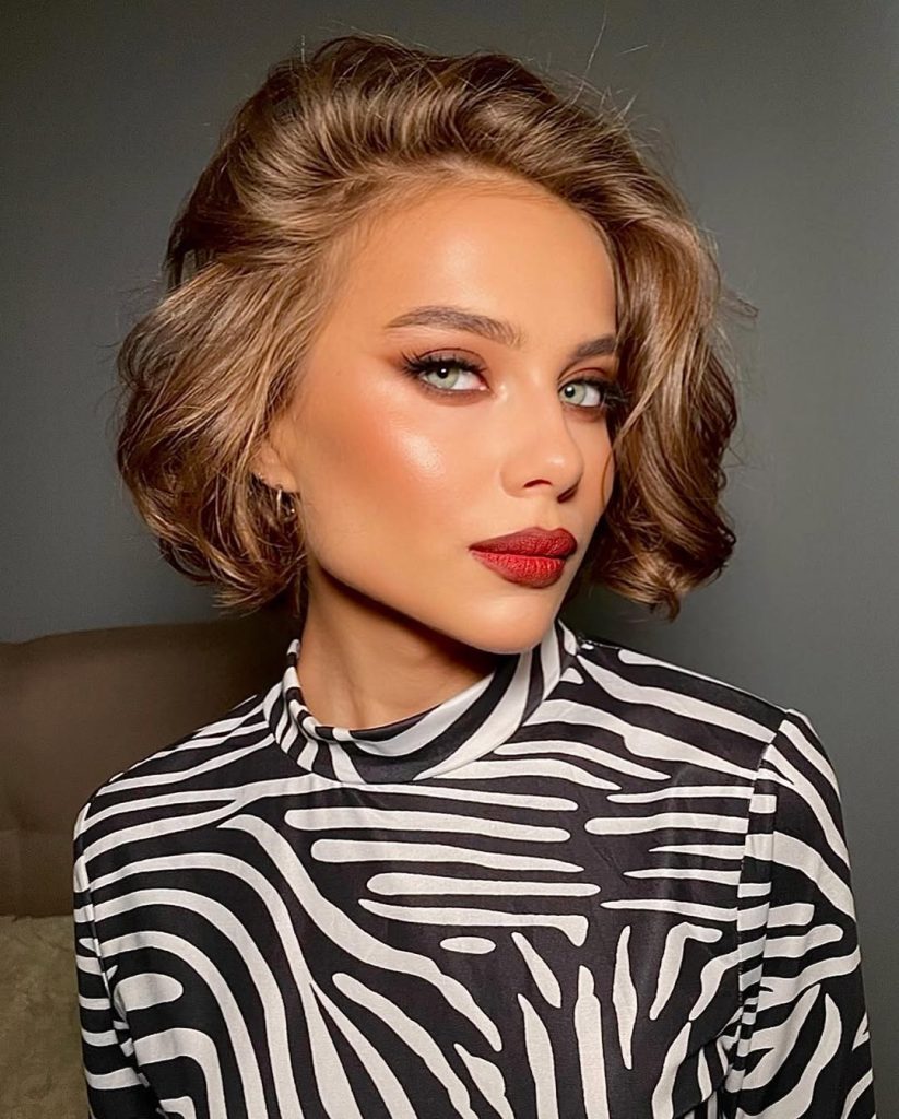 This glamorous bob bedazzles 2026 with full and luscious wet-look waves and an extra-side part. It’s bold, fearless, and show-stopping—perfect to wear with scarlet lips and dramatic earrings.