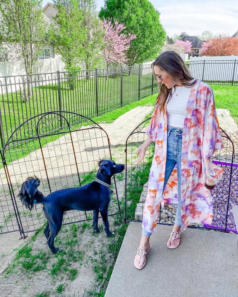 A watercolor-inspired layering moment blends relaxed denim with a flowing pastel duster, creating an easygoing casual look rooted in light spring softness.