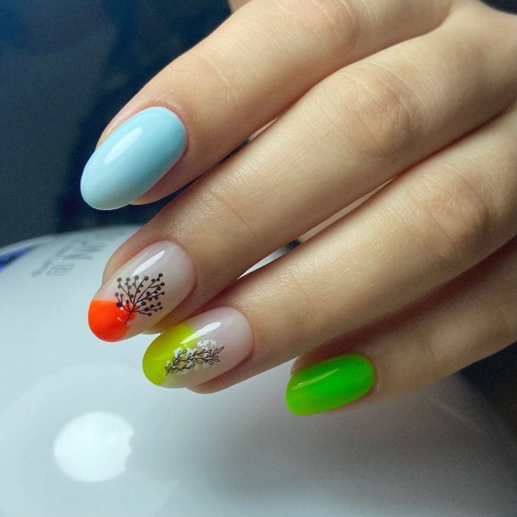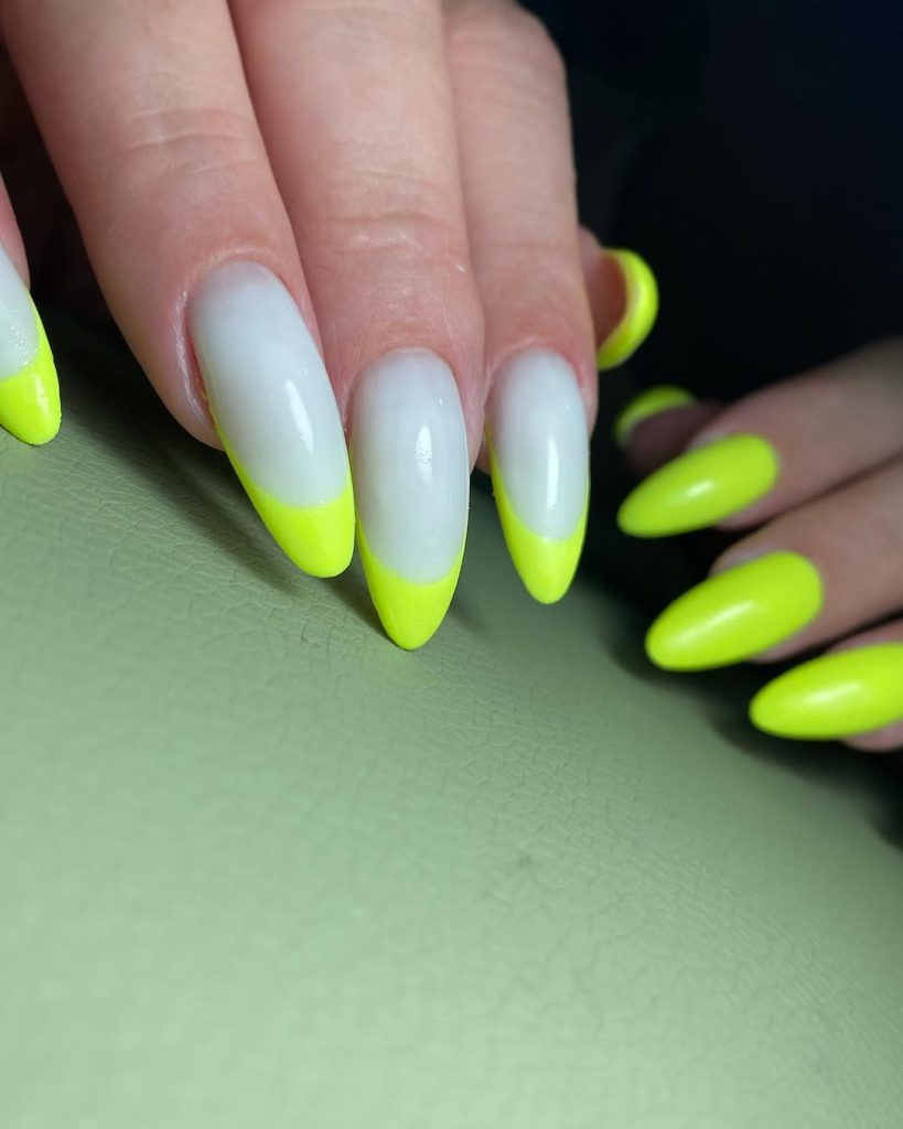 14. Neon French Almond Tips