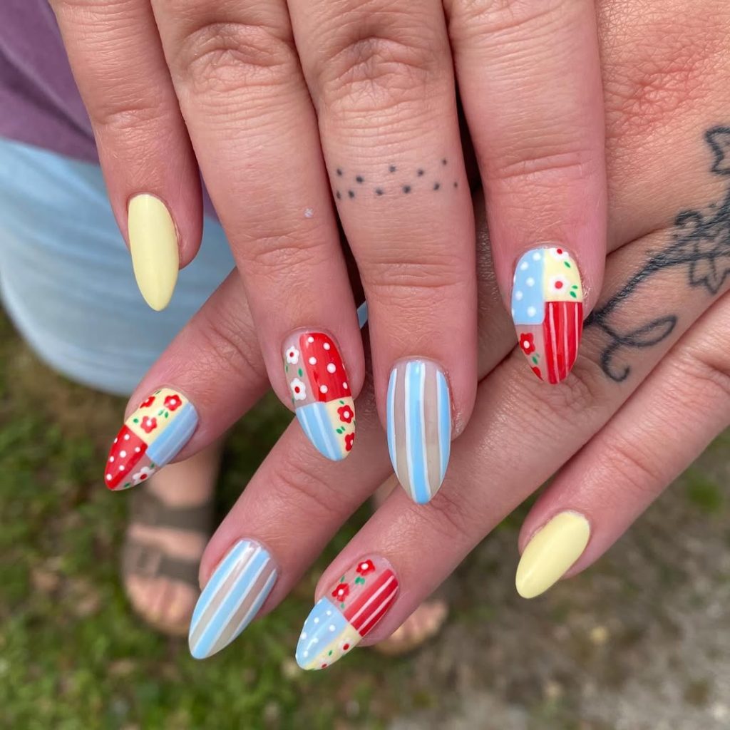 17. Patchwork Retro Spring Nails