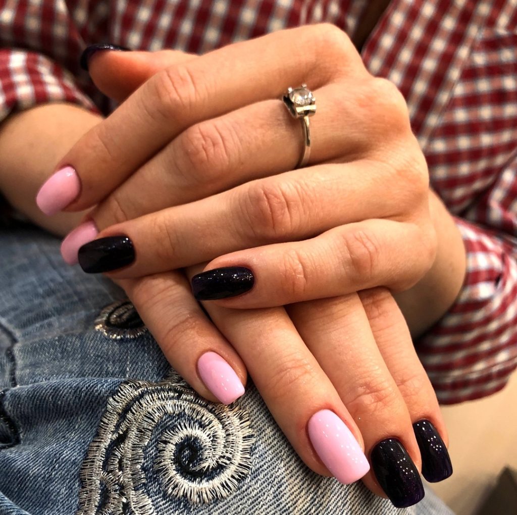 This combination of delicate Pink and a deep midnight shimmer feels like romance with a little edge. The light blush tone brings softness and elegance, while the dark glossy nails add mystery and depth. It’s the kind of manicure that feels both Cute and sophisticated—perfect for a May dinner date or a casual brunch in your favorite jeans.