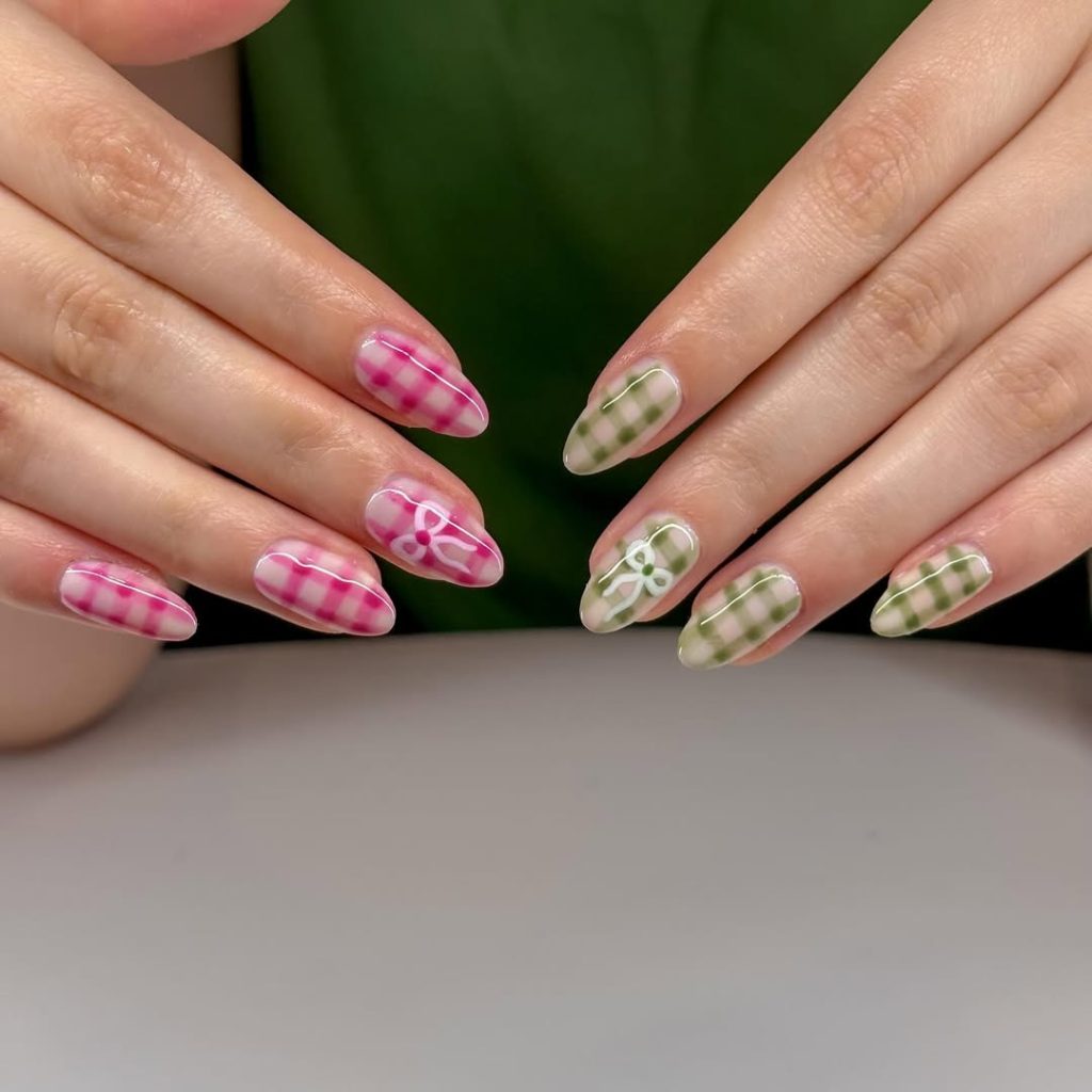 21. Pink & Sage Gingham Almond