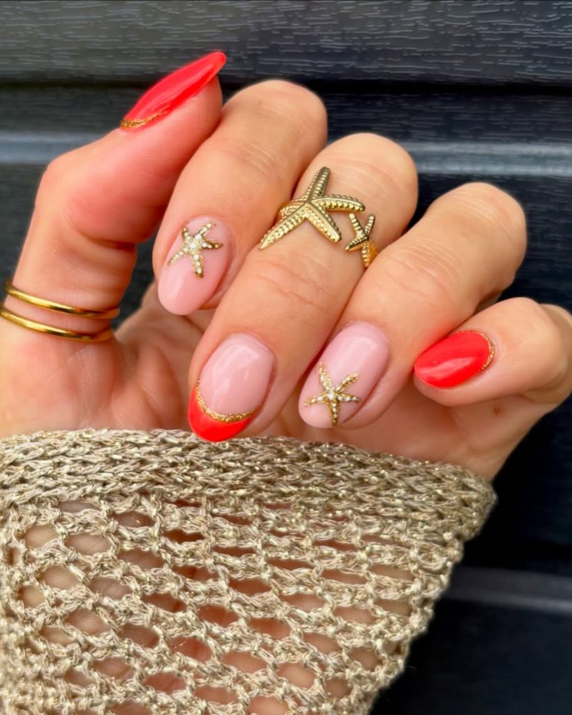 Bright coral paired with delicate gold starfish instantly brings vacation vibes. It feels warm, beachy, and effortlessly cheerful—exactly the kind of Colors 2026 that make you think of sunshine and ocean air. The glossy finish keeps everything looking fresh and polished.