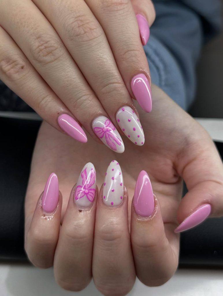 26. Soft Pink Polka Bow Almond