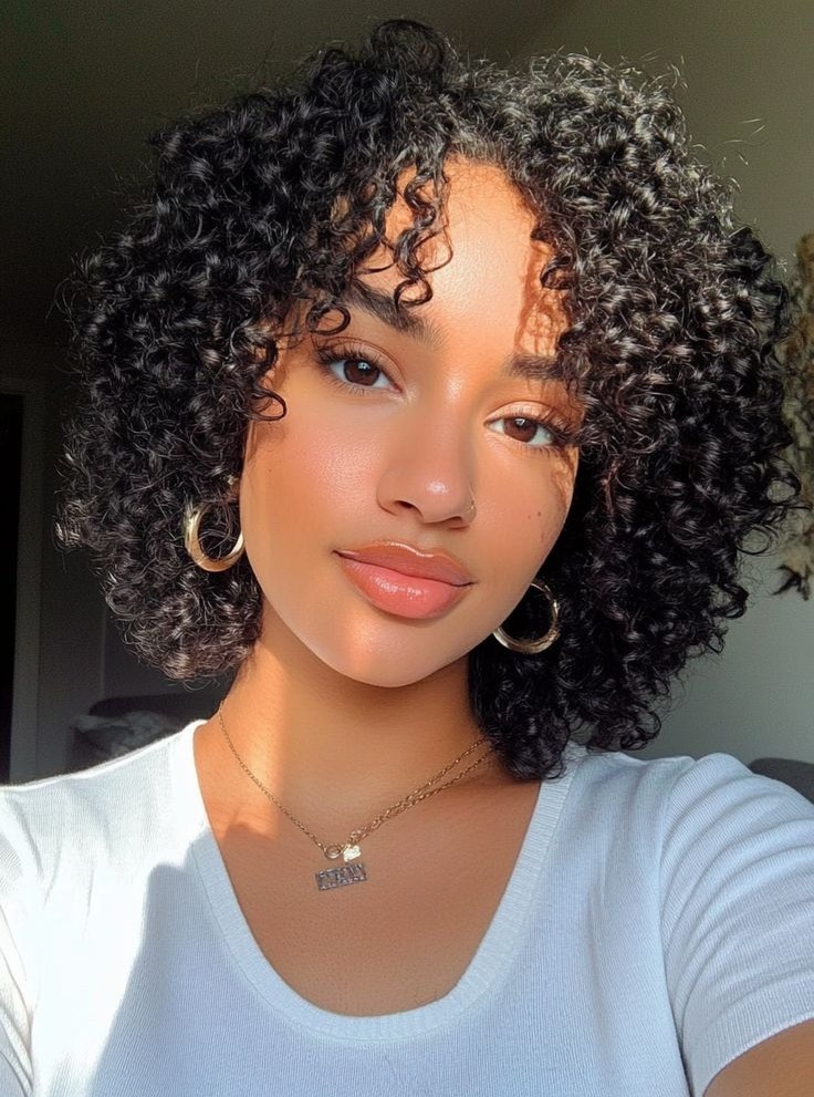 This cut has that quietly confident charm that never tries too hard. The soft, rounded silhouette feels gentle and expressive, framing the face in a way that looks thoughtful rather than styled. It gives off a cute, artistic energy that feels modern but still timeless, especially for women who want their curls to feel intentional without looking overdone. There’s a calm self-assurance here, the kind that says you know who you are, and you’re comfortable letting your natural texture speak.