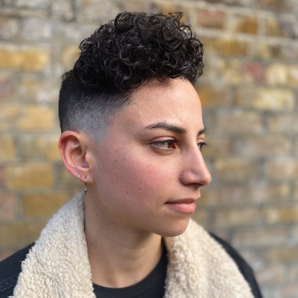 This style has a clear attitude. The close sides and curly crown of the cut create the juxtaposition that is modern, intentional, and unapologetically fierce. It is a statement haircut, but one that is not extreme. It’s a cut that empowers women who want their hair to speak for them.