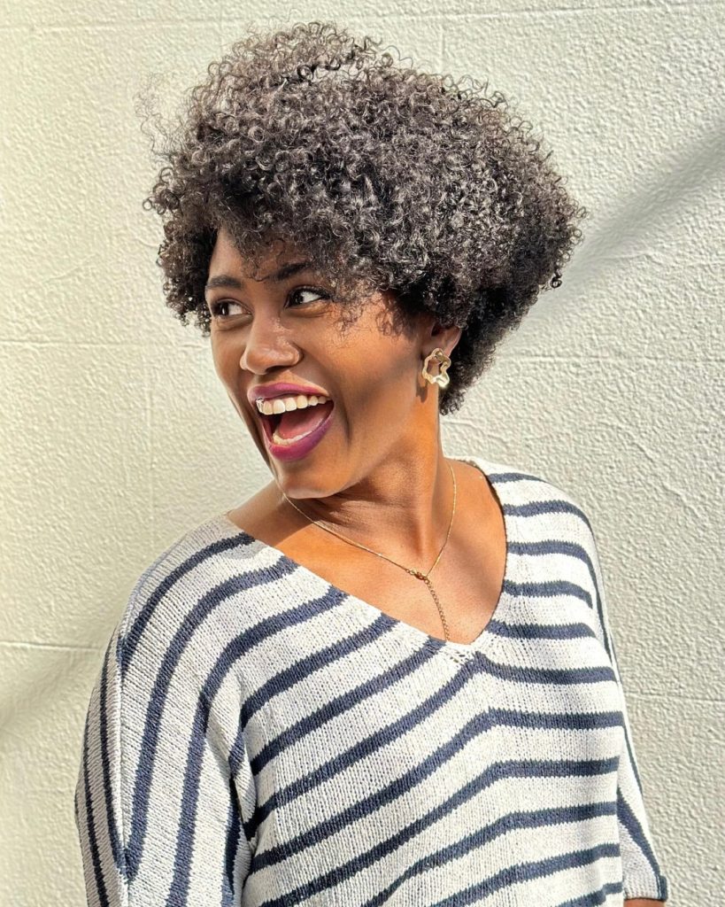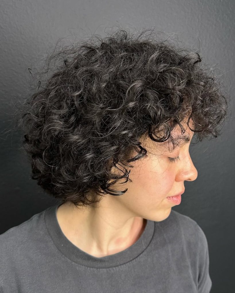 Choose a cut that suits your hair’s texture, regardless of its color or curl pattern. Short curly haircuts at any age and stage can look modern, effortless, and stylish. They can be a sign of self-acceptance and self-love. Embracing your curls is always a good thing.