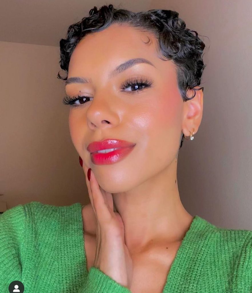 This curly pixie feels bold in the most elegant, self-assured way. The tight curls sit close to the head while still keeping softness around the face, creating a look that feels intentional and quietly powerful. There’s nothing shy about this style, yet it never feels harsh. It gives off a confident, modern mood that works beautifully for women who are ready to step into a new chapter with clarity and strength.