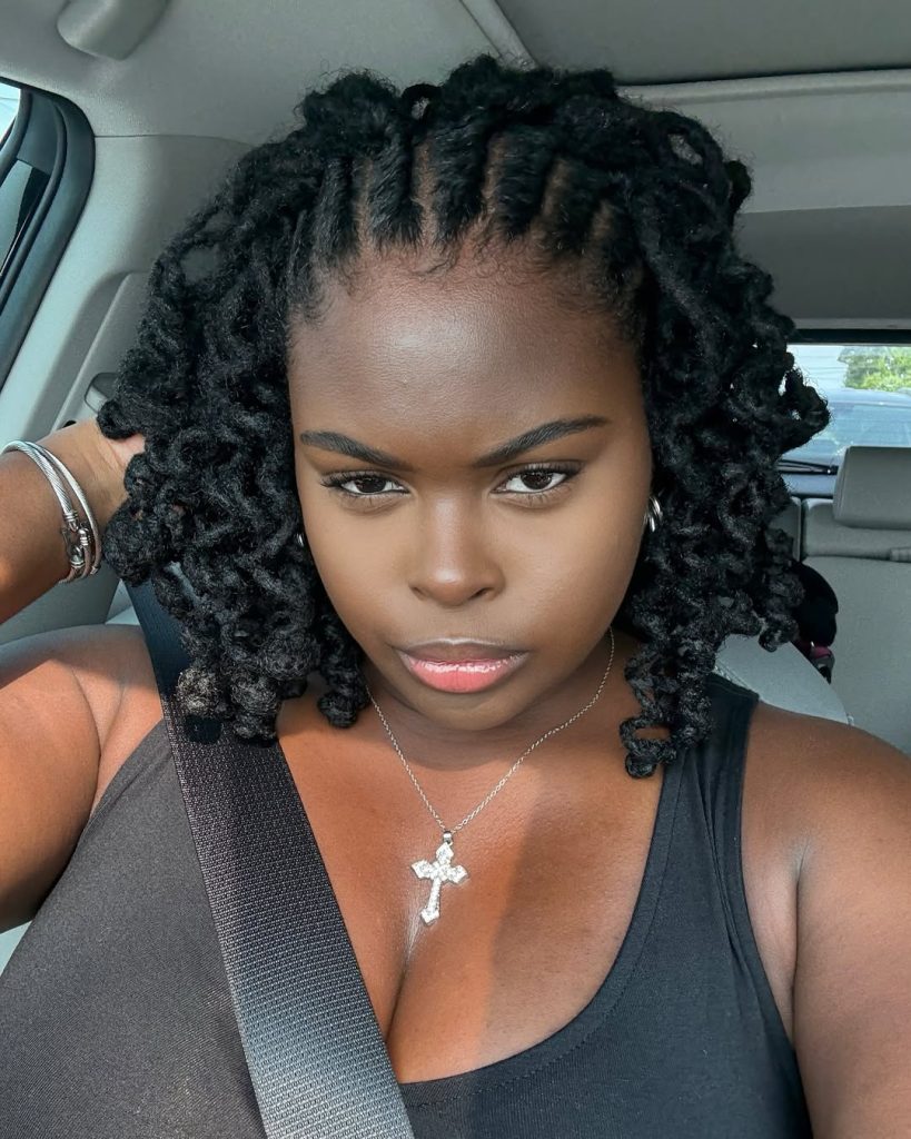 This haircut provides a valuable source of inspiration for women aiming to try out a new style that is different and does not require a lot of commitment. It is suitable for starter locations and even for children’s starter styles. Simple ties or a claw clip can be used to secure all the hair sections. If you want something simple and fun, this haircut is a great idea to show that even short locs can be versatile and playful.
