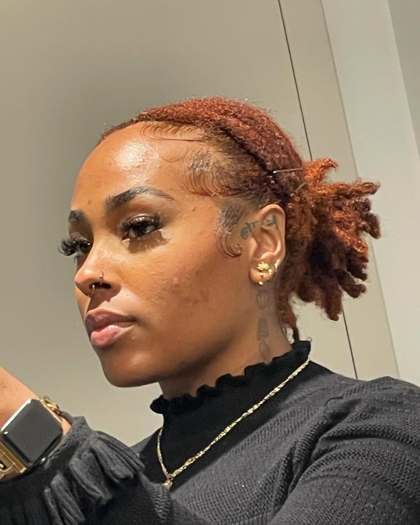 There’s a warmth to this style that instantly draws you in. The golden tone brightens the face and gives short locs a soft glow that feels uplifting and joyful. It’s the kind of look that makes you feel radiant without trying, subtle but undeniably special. This style has a friendliness to it, like a smile you can wear every day.
