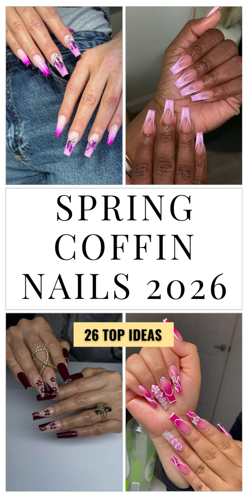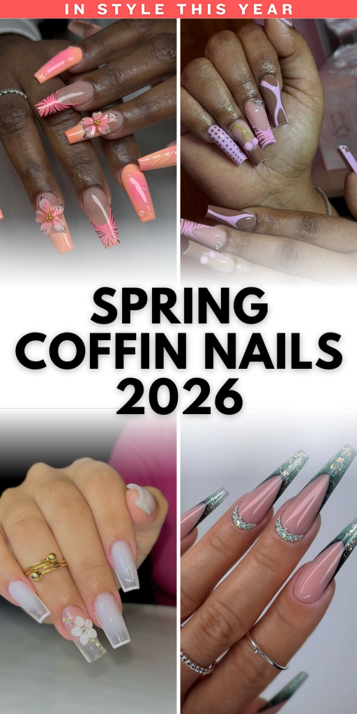 Spring is the season when nails finally get to have fun again—lighter colors, playful details, and designs that feel fresh without being overdone. Spring coffin nails 2026 are all about balance: soft pastels mixed with bold accents, florals paired with clean lines, and creative art that still feels polished. The coffin shape remains a favorite because it’s flattering, modern, and gives plenty of space for design without looking heavy.
