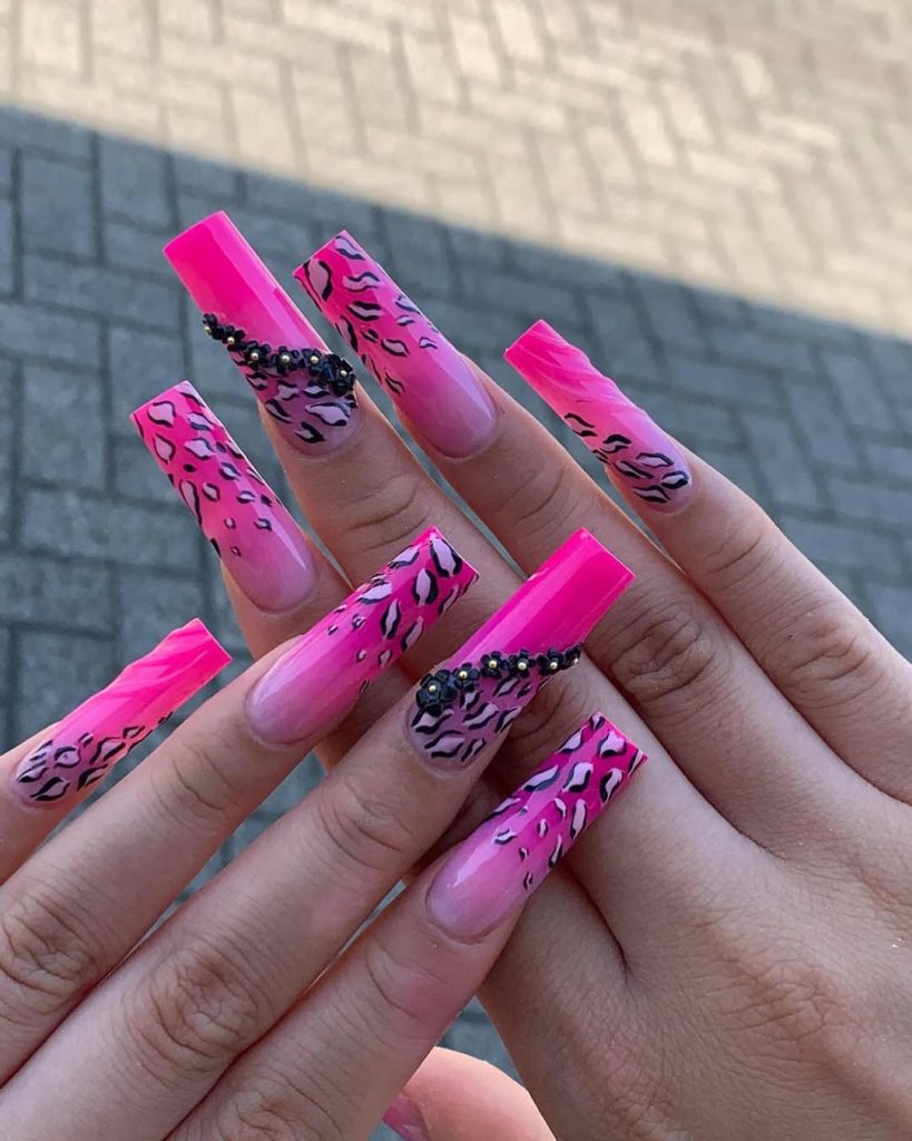 10. Hot Pink Leopard Coffin Nails