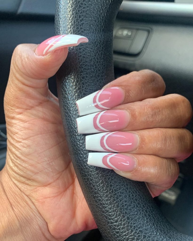 This manicure has a calm, graceful vibe that feels instantly reassuring. The blend of soft Pink and creamy white swirls creates a gentle flow that looks timeless but is not dated. It’s feminine without being overly sweet, and there’s something very put-together about this look that quietly elevates your whole style.