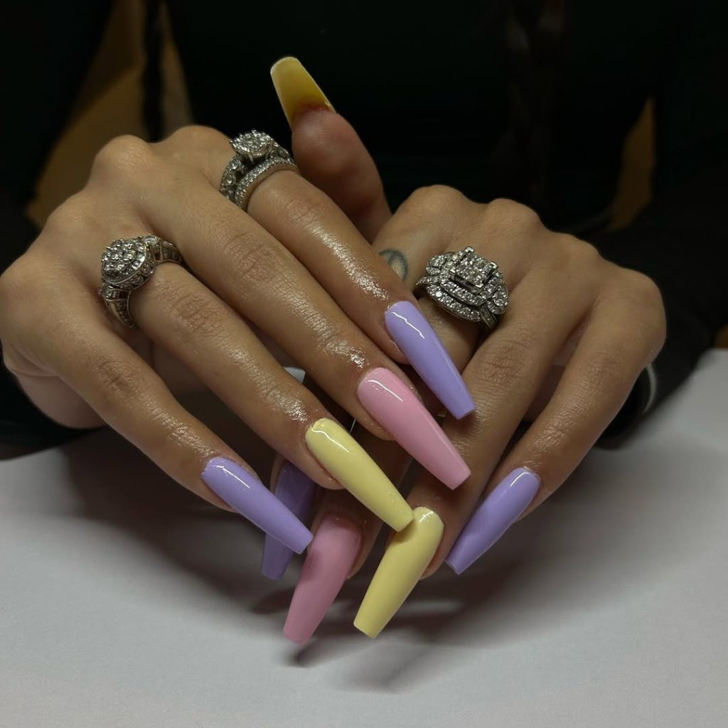 5. Pastel Mix Coffin Nails in Spring Shades