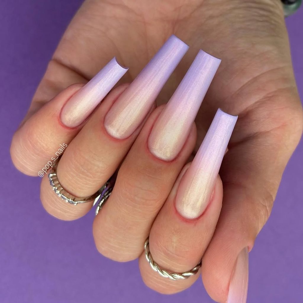 There’s something incredibly calming about this look. The pearly lilac ombre feels smooth, airy, and almost glowing, giving your nails a fresh, healthy appearance. It’s understated but elegant, the kind of manicure that quietly elevates your entire look without asking for attention.