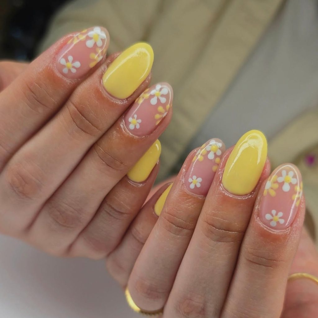 This mani screams joyful, warm, and springy vibes. The soft yellow is like an instant ray of sunshine, while the daisy accents keep things sweet but not cutesy or childish. It’s like having a little bit of sunshine with you, and that’s why it’s one of the happiest spring nail colors of 2026.