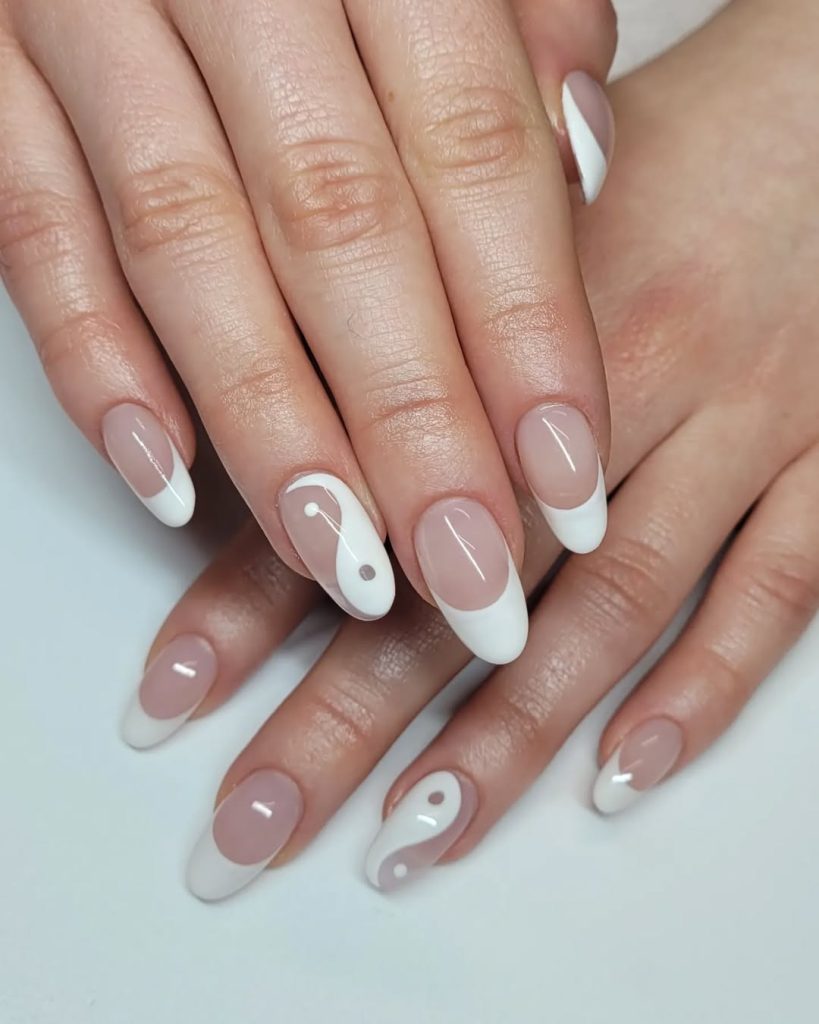 This manicure feels calm, refined, and quietly elegant. The neutral base paired with soft white tips gives a timeless French feel, but the gentle curved detail adds just enough interest to make it feel updated. It’s the kind of look that doesn’t shout but always looks intentional. For spring nail colors in 2026, this palette palette is a reminder that simple doesn’t mean boring—it means confident and well-edited.
