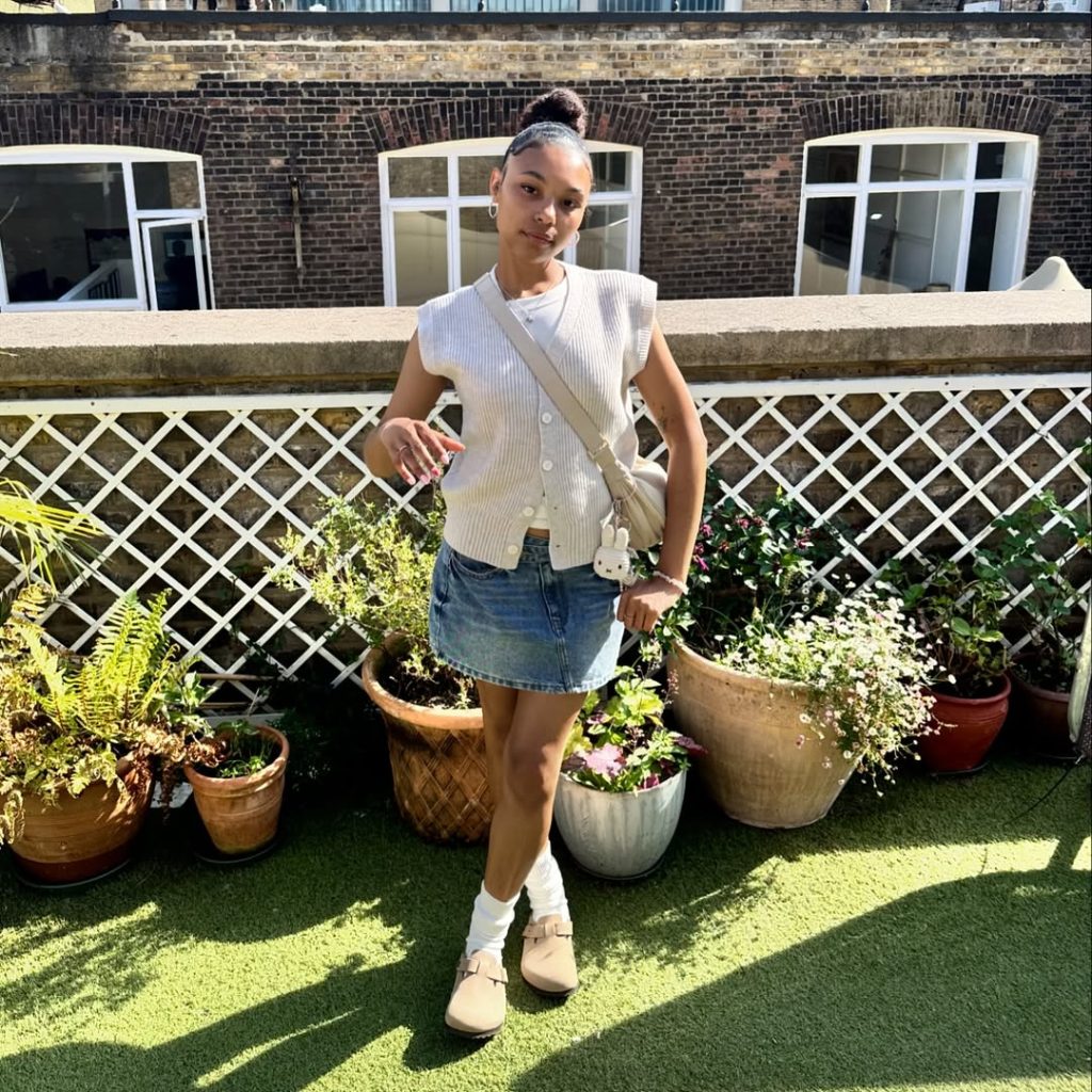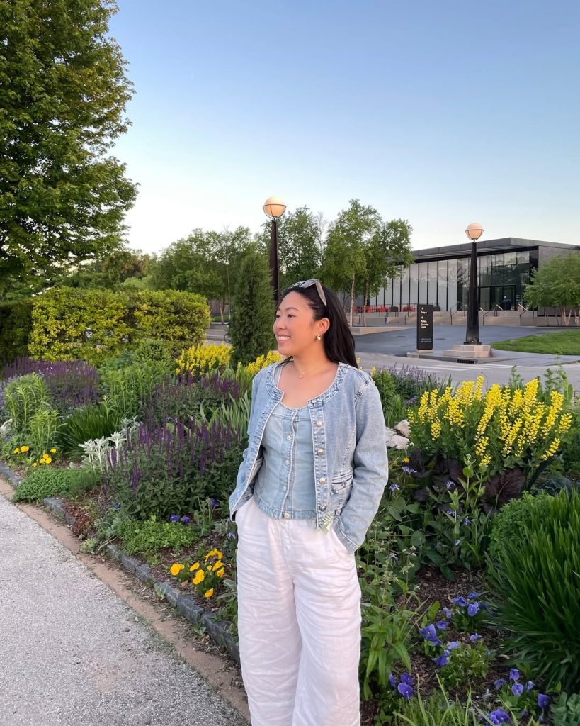 A cropped jean jacket layered over a lemon-hued skirt feels fresh, romantic, and grounded in outdoor ease.
