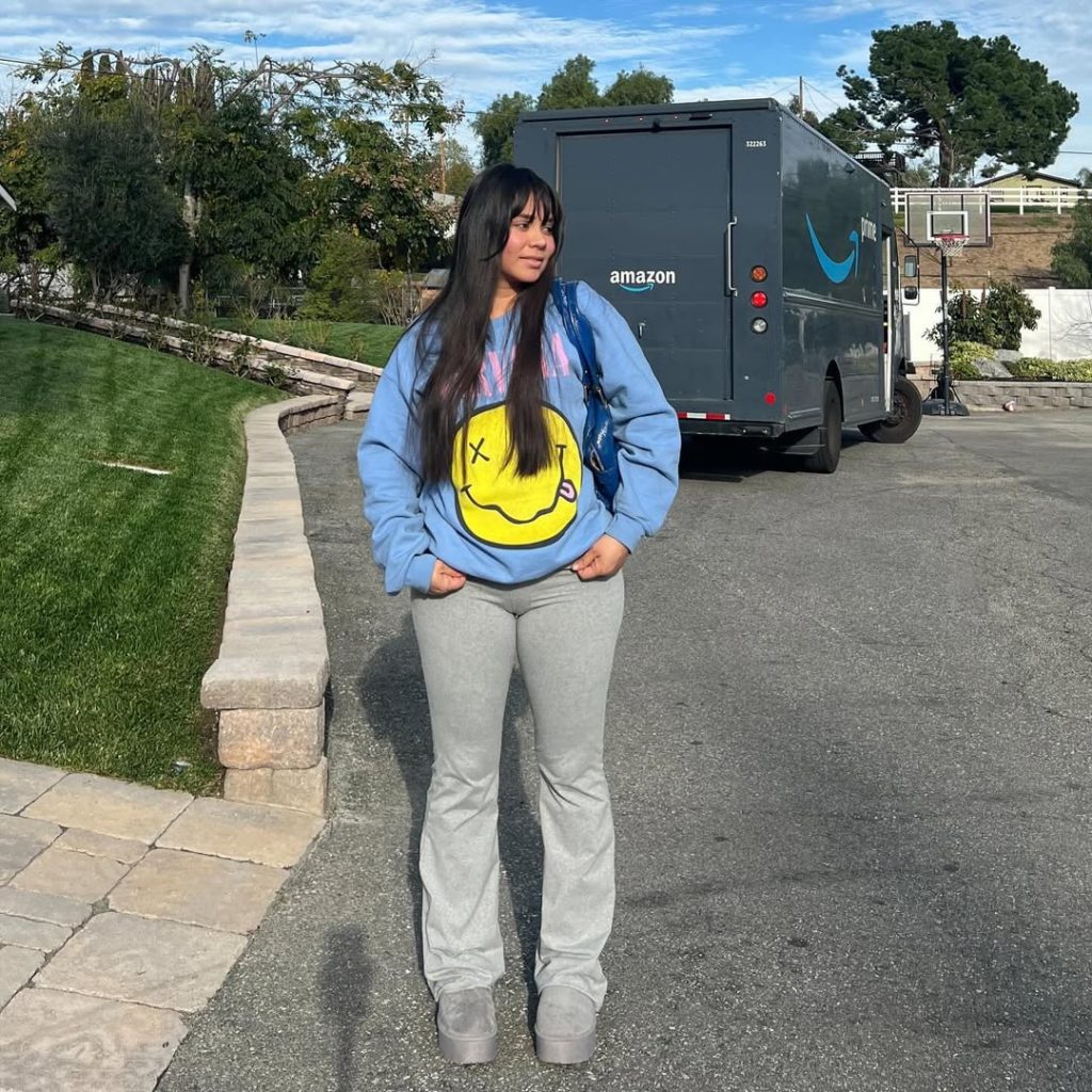 A graphic sweatshirt paired with soft, flared pants brings youthful spirit to spring dressing while staying relaxed and wearable.