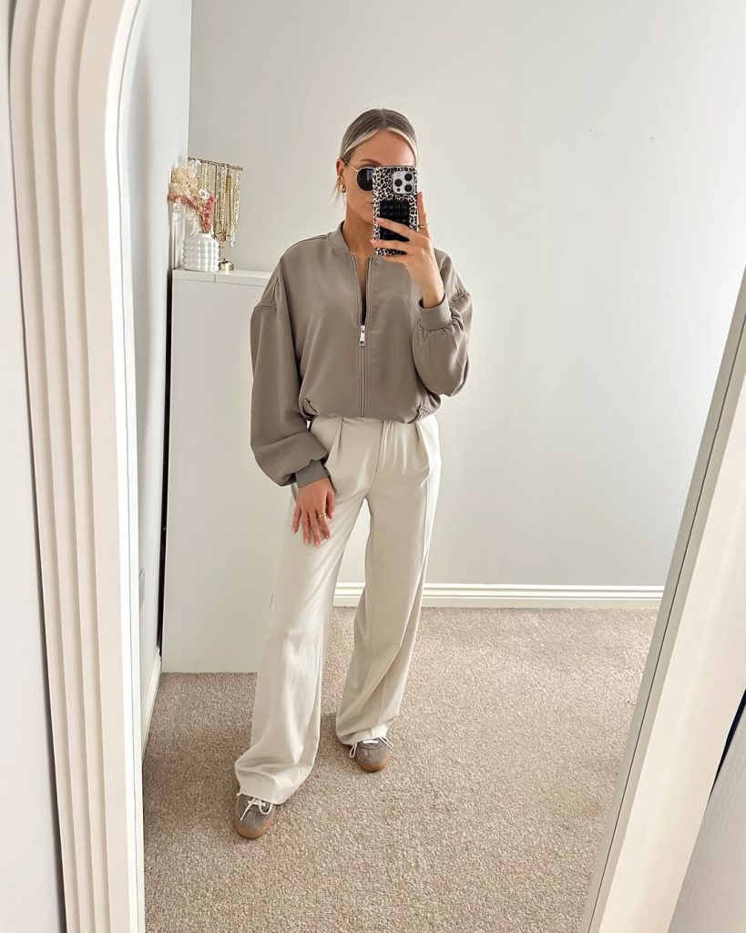 This combination feels subtly trendy and deeply stylish, great for travel days, casual lunches, or working remotely from cafés. It flatters across age groups, including over 60 casual readers who appreciate polish without stiffness. Add a structured tote for balance; avoid flashy colors—the calm palette is the star.
