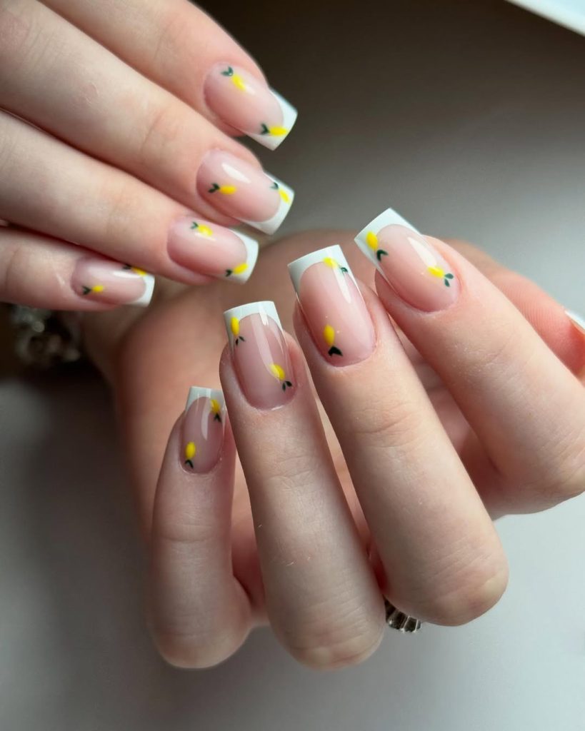 This manicure is perfect for short- to medium square nails and works beautifully in the spring and Summer. The clean French shape keeps it timeless, while the playful fruit accents give it that 2026 twist. If you’re looking for Inspo 2026 that feels bright but not overwhelming, this cheerful design is a beautiful choice.