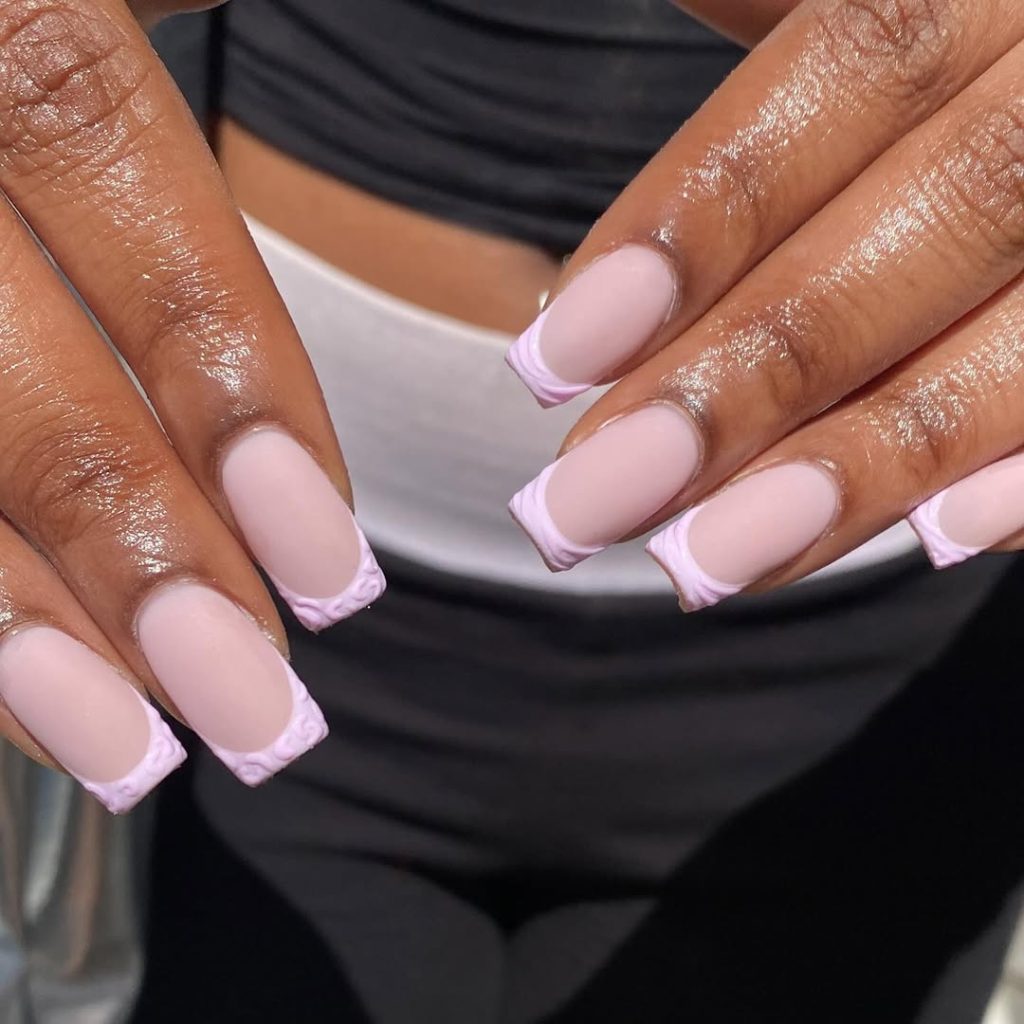 There’s something undeniably chic about a matte blush base paired with sculpted square tips. The soft Pink tone feels calm and refined, while the raised detailing along the edges adds quiet texture. It’s understated but far from boring. This nail polish is the kind of manicure that whispers style instead of shouting it.