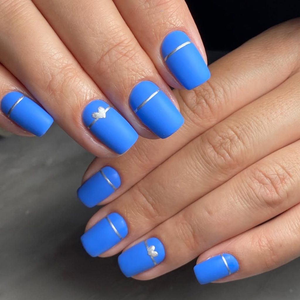 This matte Blue square manicure feels calm, collected, and quietly powerful. The thin metallic stripe across each nail adds structure without overwhelming the clean shape. And that tiny heart detail? The tiny heart detail adds just enough charm to give it a personal touch. It’s the kind of Simple design that makes you look polished, even on your busiest days.