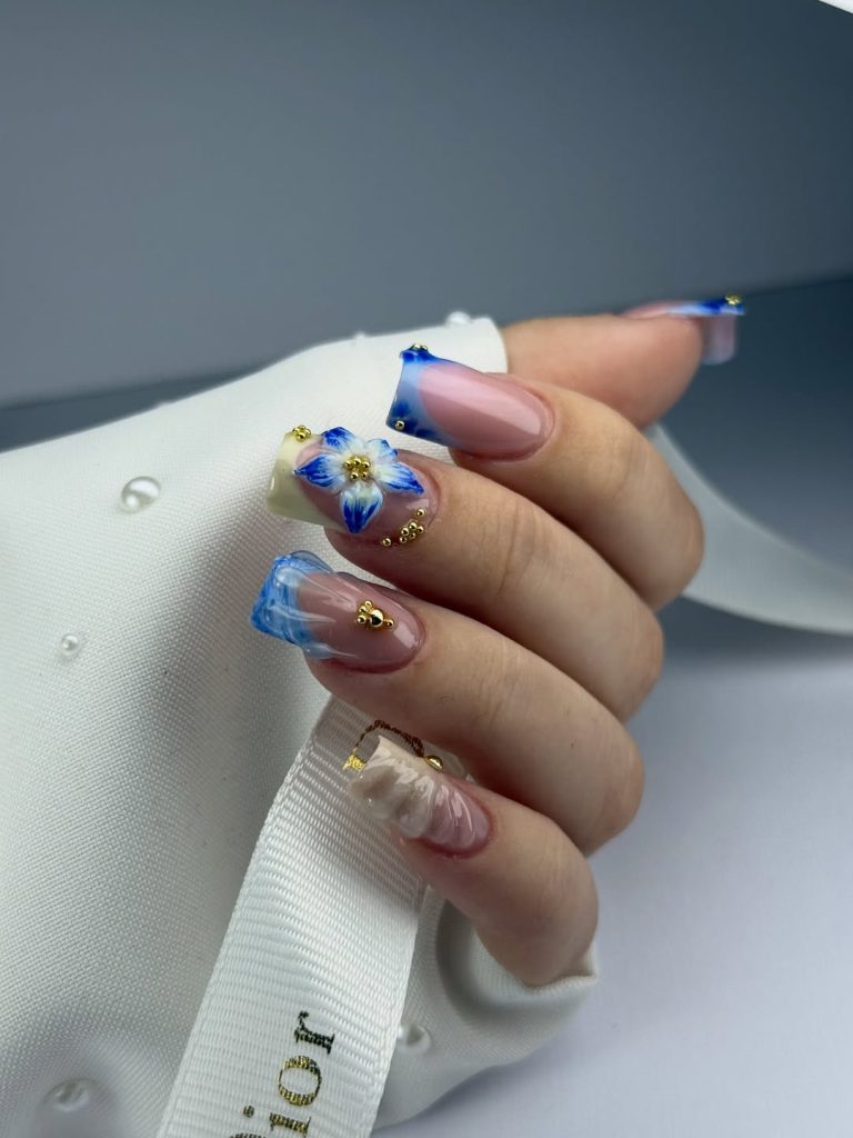 These long, square nails are ideal if you enjoy detailed nail art. The Blue tones feel fresh for 2026 and transition beautifully into Summer. If you’re searching for Inspo 2026 that blends artistry with refinement, this design is a gorgeous choice.