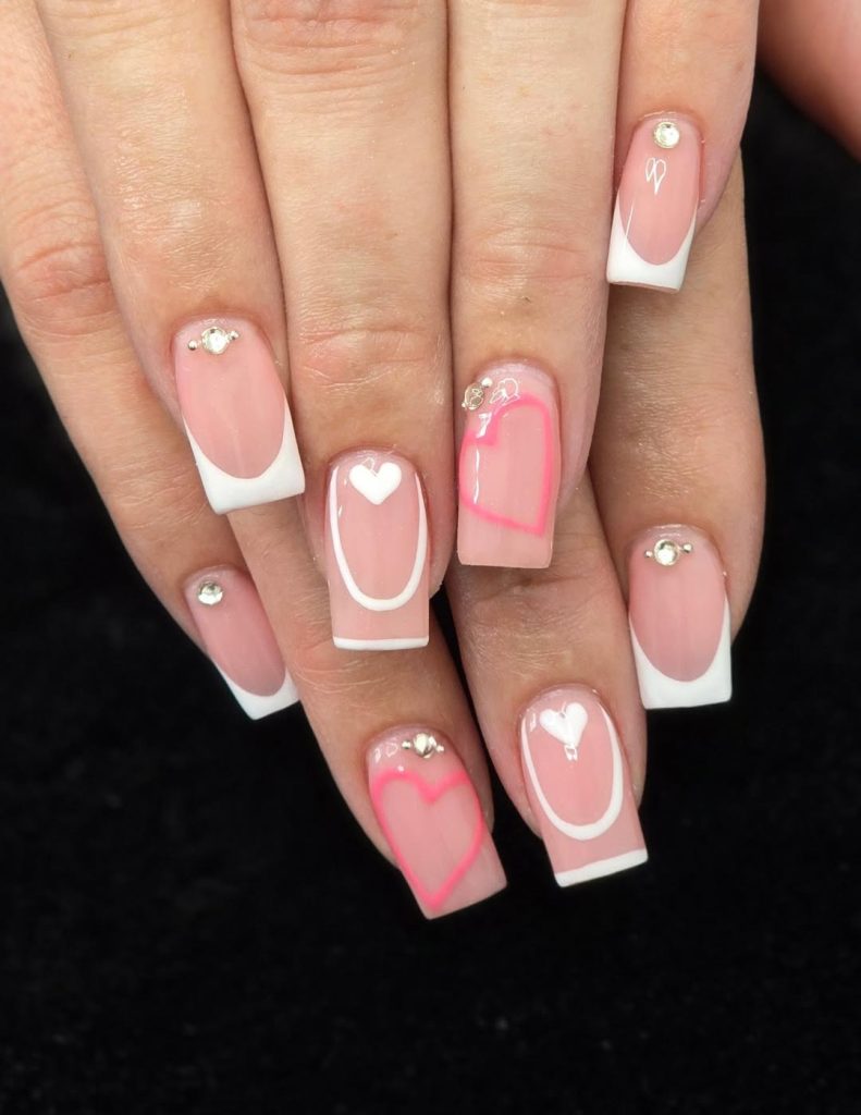 Sweet, playful, and a little nostalgic—this Pink heart-inspired design feels joyful and feminine. The crisp white French elements, combined with soft pink details, create contrast without overpowering the look. It’s Cute in the best way—polished, clean, and thoughtfully designed.