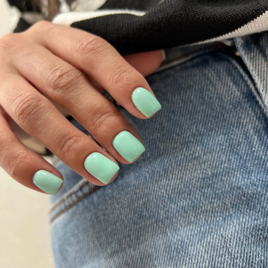 This soft Green mint shade feels like the first warm breeze of Spring. Clean, uncomplicated, and quietly confident, it demonstrates that simplicity can still make a significant impact. The crisp square shape keeps everything structured, while the glossy finish adds just enough polish to feel intentional. It’s one of those 2026 ideas that doesn’t beg for attention but still gets compliments.