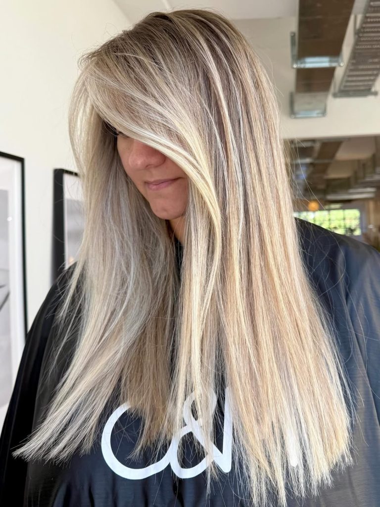 What sets this look apart from flatter blonde styles is the added dimension, which gives the hair life and depth. It’s especially great for those transitioning from Brunette hair or looking to keep some warmth in their color. A soft wave enhances the variation in tones, making the style a versatile and modern option that never feels one-dimensional.