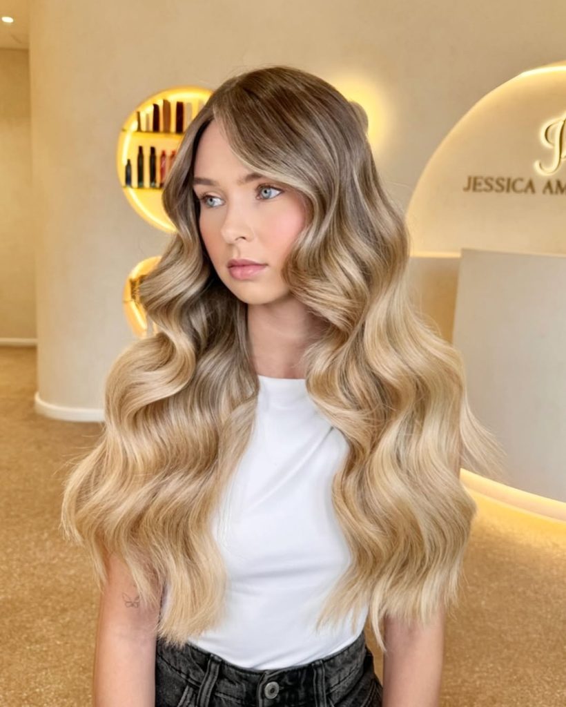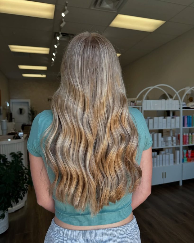 This style is perfect for anyone who wants a Natural, wearable blonde that doesn’t feel overly processed. It suits medium- to long-length hair and works especially well for those transitioning from brown to dark hair. The soft Dimension keeps it from looking flat, while loose waves enhance the lived-in texture, making it ideal for an effortless, everyday routine.