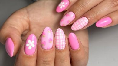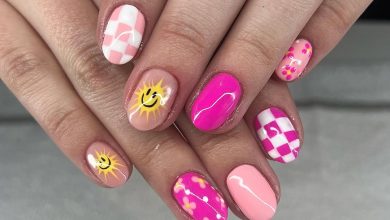 These nails include a wonderful mixture of pastel shades, such as blue, pink, and yellow. Almond-shaped nails are embellished with a nude color base, and they have gentle swirls of halcyon shades on top. This design is an excellent choice for the spring or summer seasons, as it provides a soft and feminine look that is at the same time playful and sophisticated.