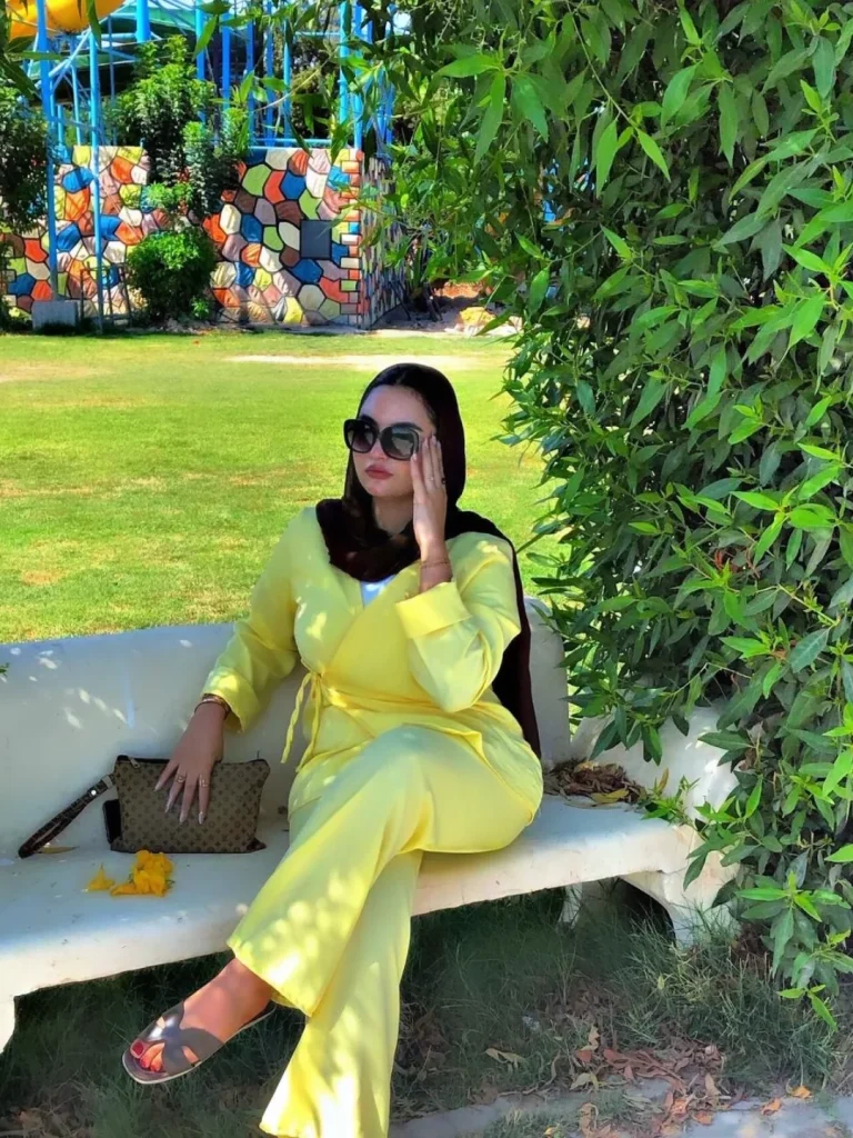 Perfect for women who love casual classy dressing, this look pairs effortlessly with beige pants, loafers, and gold jewelry. The fabric’s texture catches the light gently, proving that yellow can be refined and timeless, not just bold.