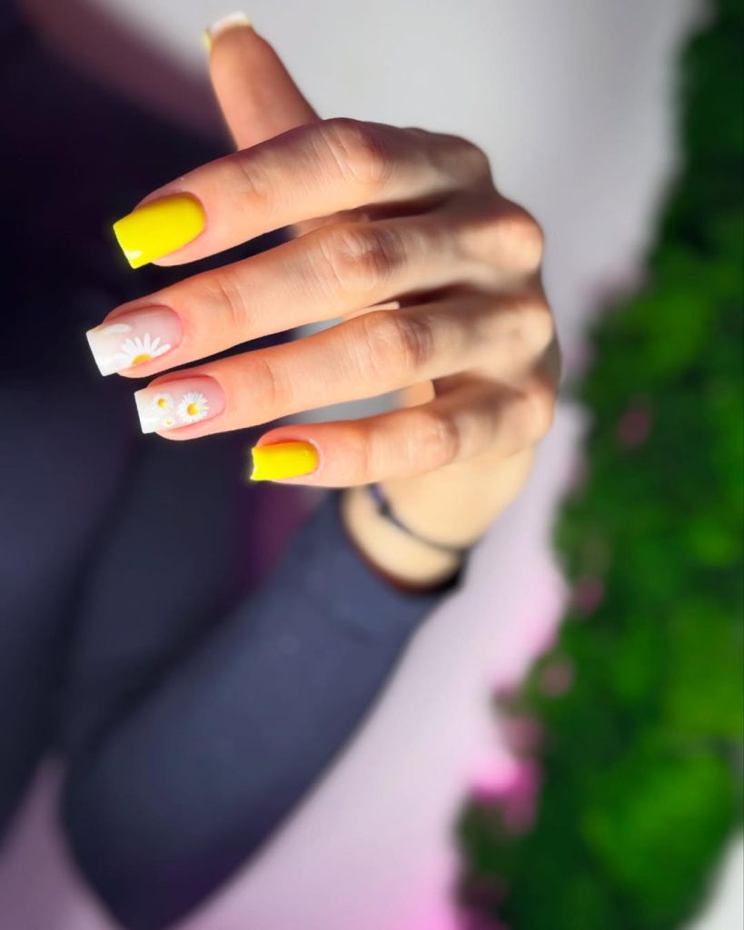 1. Lemon Daisy Acrylic Nails feature a soft spring glow.