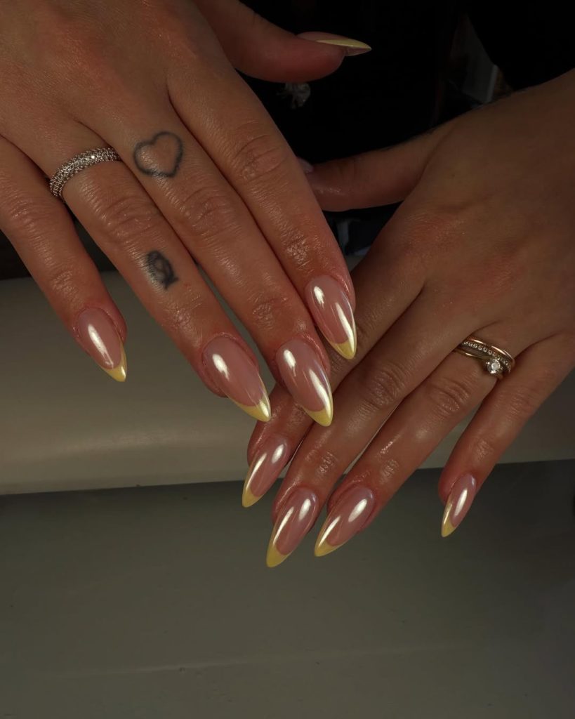 If you’re one for playing around with colors and styles, this manicure is a great option. The almond shape gives the design space and makes it feel intentional. For spring 2026, this manicure is a great option for yellow spring nails that feel fun and expressively unique.