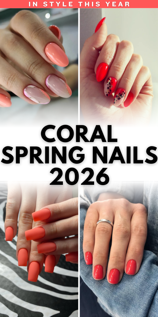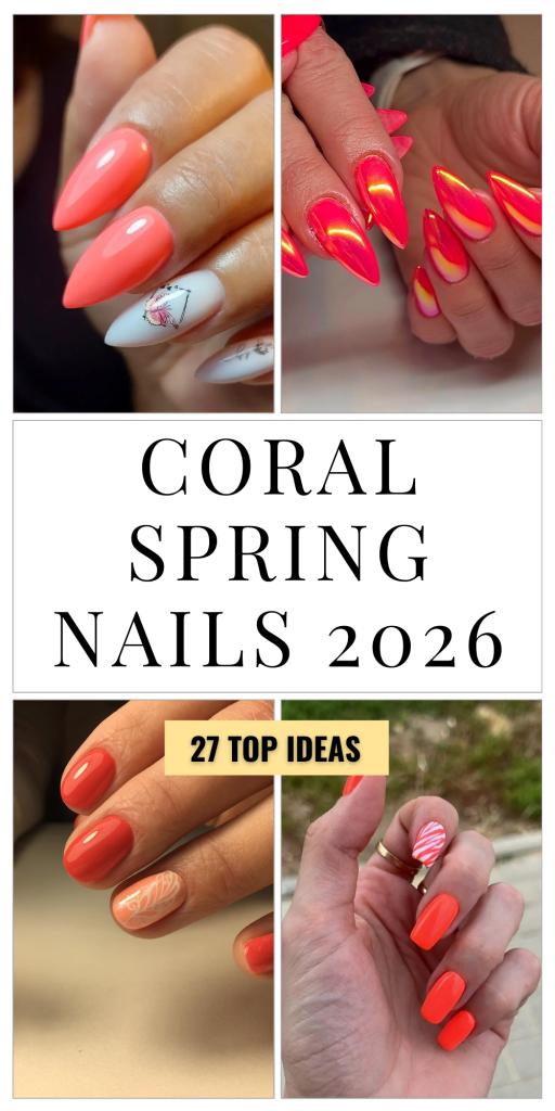In this collection of 27 Ideas, you’ll see everything from short square manicures perfect for everyday wear to dramatic stiletto shapes that turn heads instantly. Regardless of your preference for simple styles or statement looks featuring shimmer, gold foil, zebra patterns, or subtle glitter, these coral nails demonstrate that in 2026, bold color and clean execution are the perfect combination for spring.
