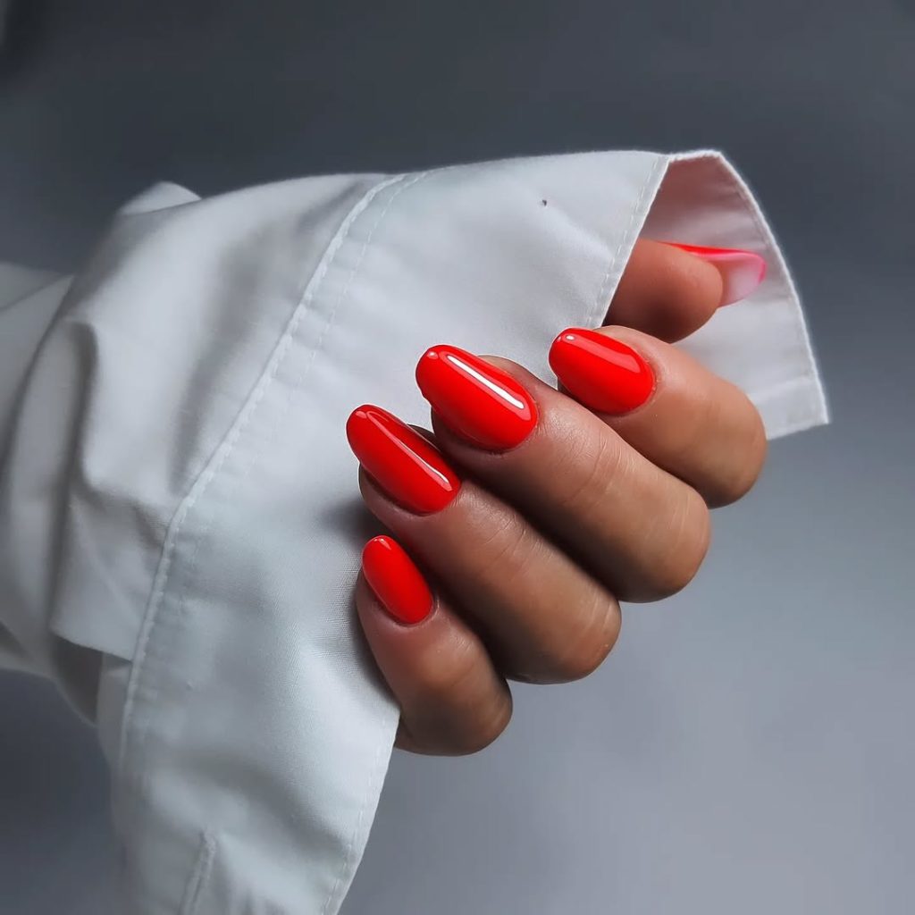 If you love clean Designs that don’t need extra detail, this polish is your go-to. The oval shape softens the hands and works beautifully on medium lengths, especially if you prefer something elegant but not overly dramatic. In 2026, bold single-color nails are still leading the Ideas list, and this one proves that sometimes less really is more.