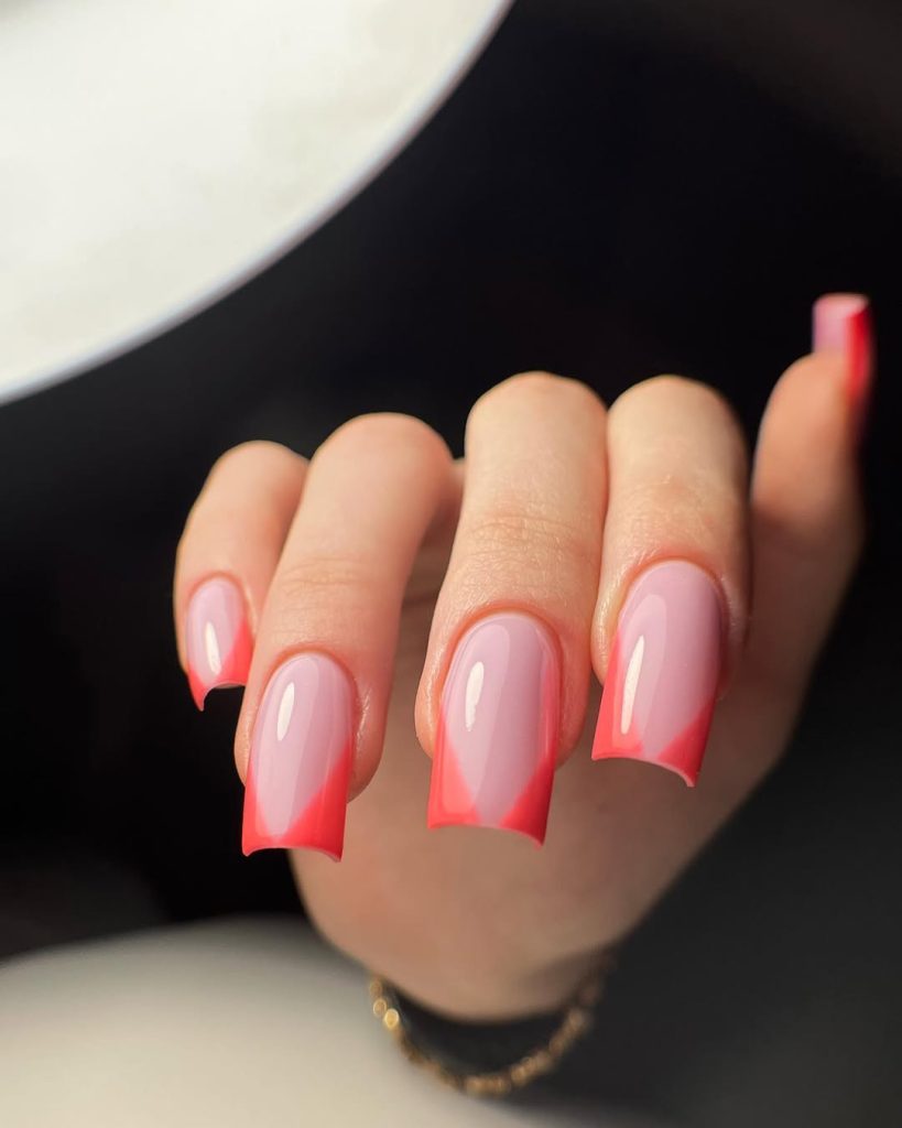 This coral French fade feels romantic and refined at the same time. The translucent nude base melts gently into a coral tip, creating a modern take on French elegance. It’s subtle but still undeniably Bright, like a whisper of color that catches the light in the most flattering way.