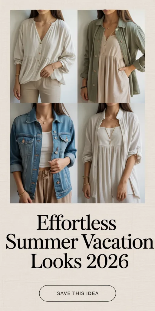 What makes summer vacation outfits for 2026 especially exciting is the mix of soft neutral tones with playful pops of color, along with textures that add depth without sacrificing comfort. Whether you’re heading to a coastal escape, exploring a vibrant city, or enjoying a quiet countryside retreat, these looks are designed to move with you while keeping your style fresh, modern, and effortlessly put together.